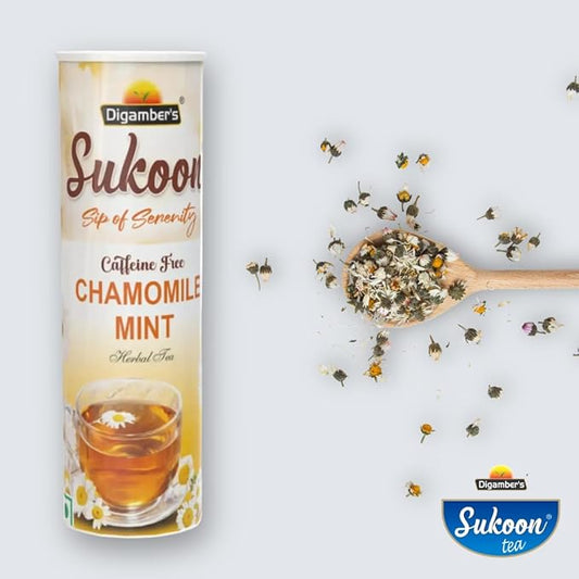 Sukoon Chamomile Mint Herbal Tea | Caffeine-Free, Soothing & Refreshing Blend | Promotes Relaxation, Aids Digestion & Sleep | Enjoy a Natural Herbal Infusion for a Calming Experience Anytime!