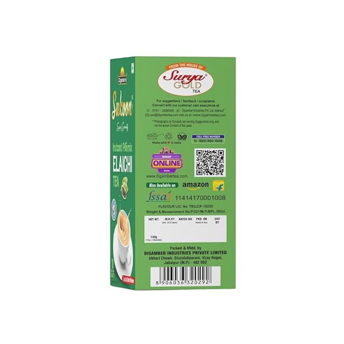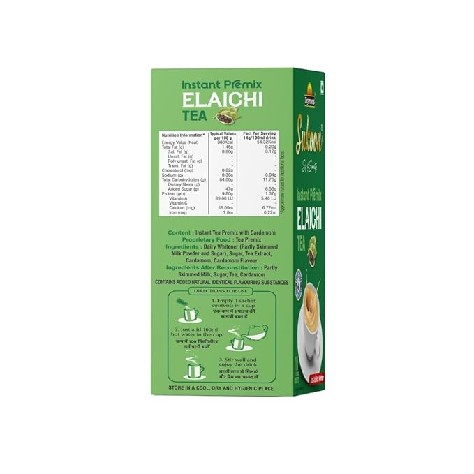 Sukoon Instant Premix Tea is your perfect solution for enjoying a refreshing cup of tea in seconds. Crafted from a harmonious blend of premium tea leaves and aromatic spices, our instant tea mix delivers the authentic taste of traditional Indian chai without the hassle of brewing. Simply add hot water or milk, stir, and enjoy the rich, robust flavor that captures the essence of true chai. Made with high-quality ingredients, Sukoon Instant Premix Tea offers the convenience of a delicious beverage anytime, whether at home, in the office, or on the go. With its health benefits, including antioxidants that support overall well-being, this versatile tea can be enjoyed plain or customized with your favorite sweeteners and spices. It also makes an ideal gift for tea lovers, perfect for birthdays or special occasions. Elevate your tea-drinking experienceÑorder Sukoon Instant Premix Tea today and savor the delightful taste that has everyone talking!