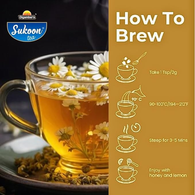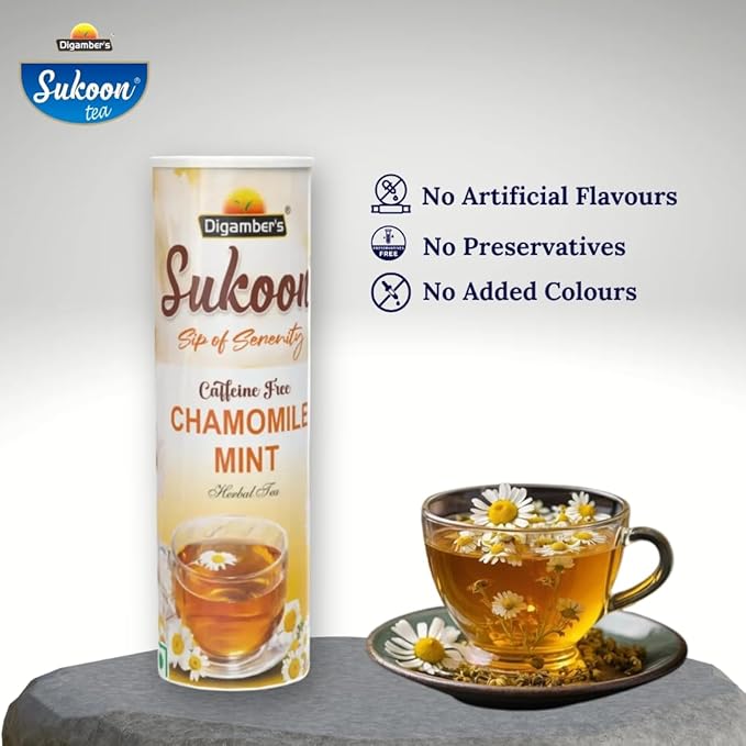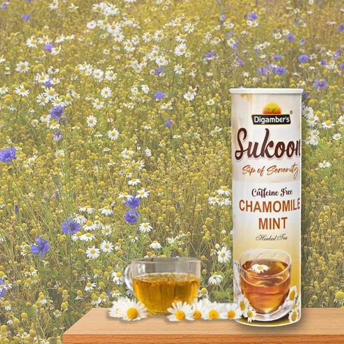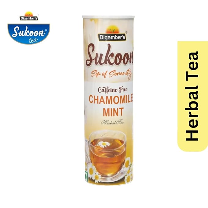 Sukoon Chamomile Mint Herbal Tea | Caffeine-Free, Soothing & Refreshing Blend | Promotes Relaxation, Aids Digestion & Sleep | Enjoy a Natural Herbal Infusion for a Calming Experience Anytime!