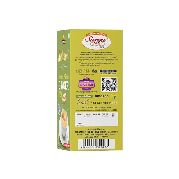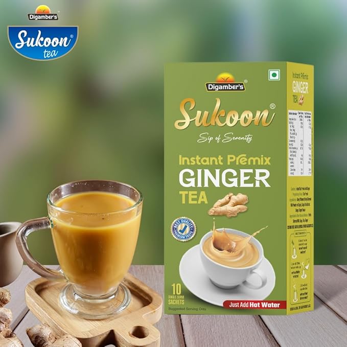 Sukoon Ginger Instant Premix Tea - 140g | Zesty Adrak Chai Mix | Quick & Easy Preparation | Refreshing & Warming Flavor