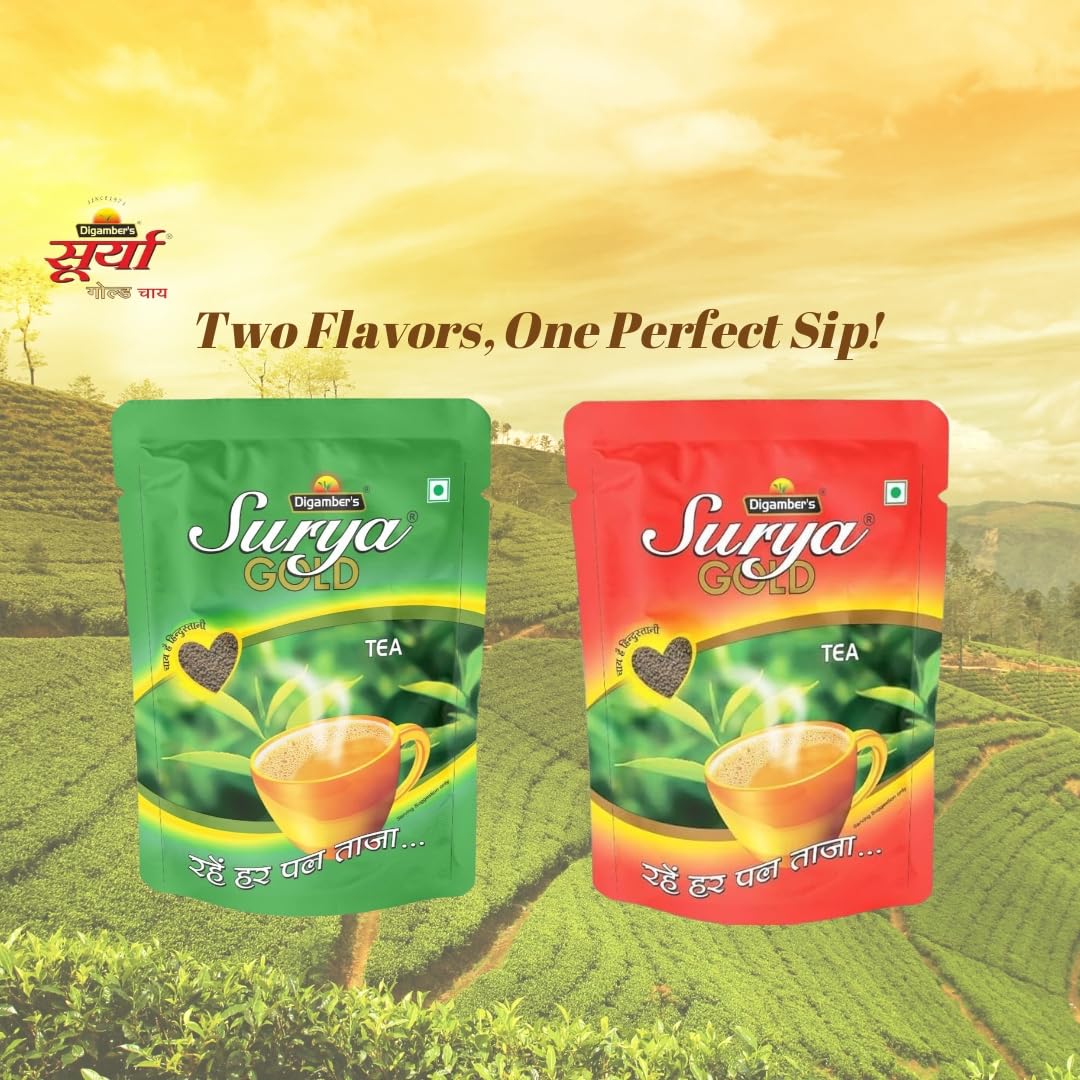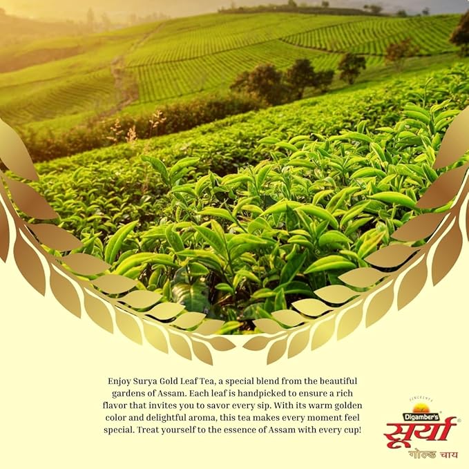 Surya Gold Dust Tea is sourced from the finest tea gardens of Assam, renowned for producing high-quality tea. This special blend delivers a rich, full-bodied flavor and a strong, inviting aroma, making it a top choice for tea lovers. The dust tea brews quickly, making it ideal for busy mornings or relaxing afternoons. Each cup of Surya Gold Tea offers a comforting, robust taste that pairs perfectly with milk and sugar or enjoyed plain for a stronger brew. Finely processed for quick infusion, this tea offers versatilityÑwhether you prefer it as traditional chai, iced tea, or with added spices like cardamom or ginger. Rich in antioxidants, this tea may support overall wellness and digestion, while providing a refreshing start to your day. Packaged to ensure lasting freshness, Surya Gold Dust Tea brings the authentic taste of Assam to your cup, promising a delightful tea experience for every occasion.