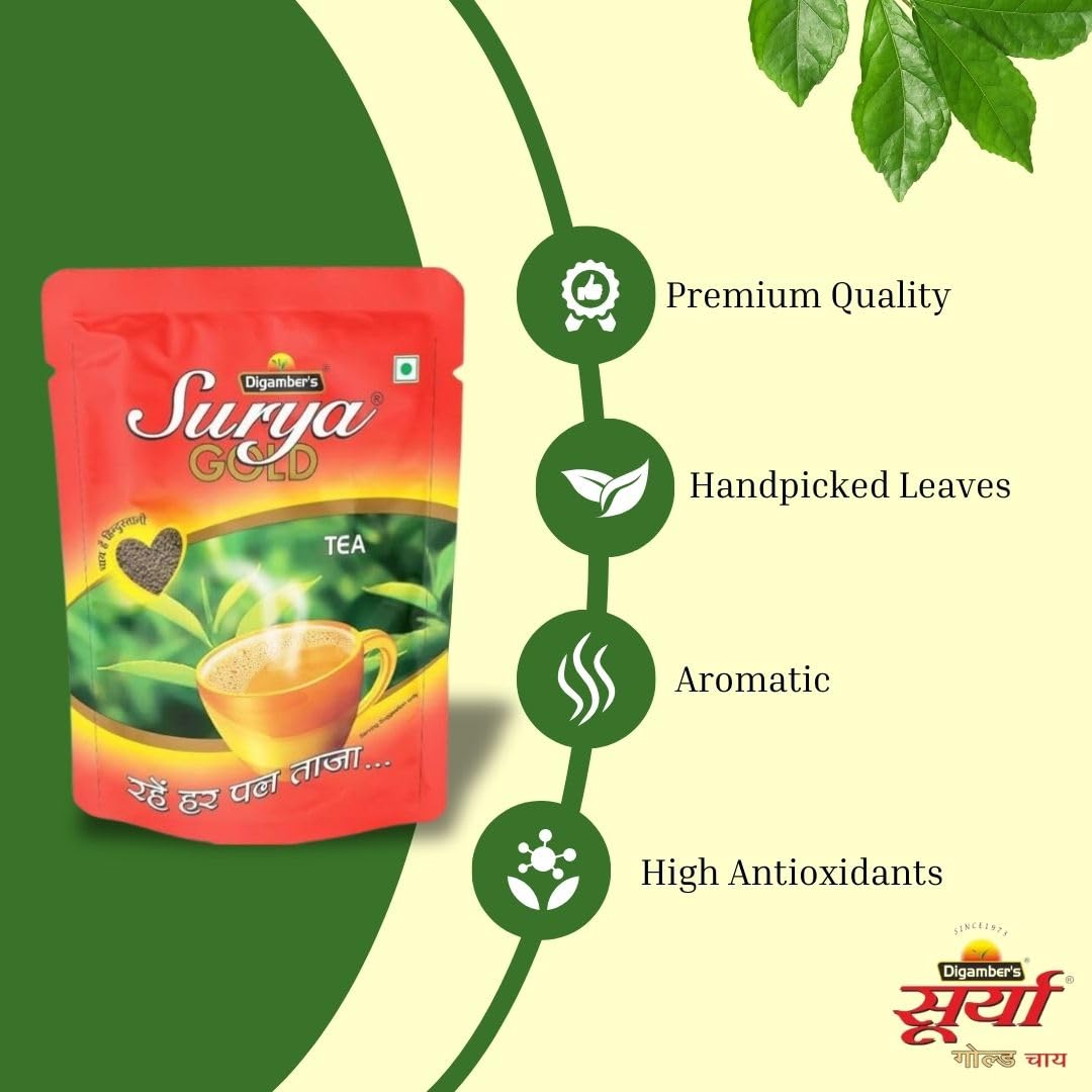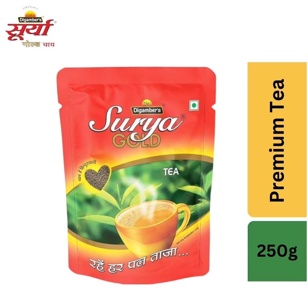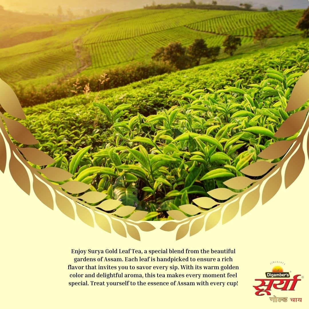 Surya Gold 250g Leaf Tea is sourced from the esteemed tea gardens of Assam, known for producing some of the finest teas in the world. This premium leaf tea offers a robust and full-bodied flavor profile that stands out with its strong, invigorating taste. Each cup delivers a rich, aromatic experience, ideal for those who appreciate a deep and satisfying tea. Crafted from handpicked leaves, Surya Gold Tea ensures superior quality and consistency with every brew. The generous 250g pack is designed for extended freshness and value, making it perfect for daily consumption or entertaining guests. Its versatile nature allows you to enjoy it black, with milk, or with a touch of sugar, catering to various preferences. Rich in antioxidants, this tea not only provides a refreshing beverage but also supports overall health and wellness. Surya Gold 250g Leaf Tea brings a touch of traditional Assam tea culture into your home, making it a great choice for any occasion. Embrace the legacy of Assam tea and enjoy a truly delightful tea experience with every cup.